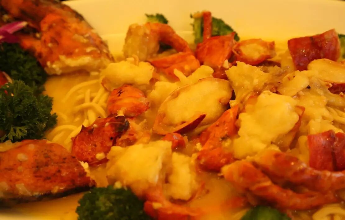 推荐:重点是龙虾,很入味,嫩滑美味,爽口弹牙,蒜蓉的焦香融入奶香的芝士,吃一口香醇满溢口;龙虾的鲜肉汁会慢慢的而深入到伊面当中,伊面就更加的入味。