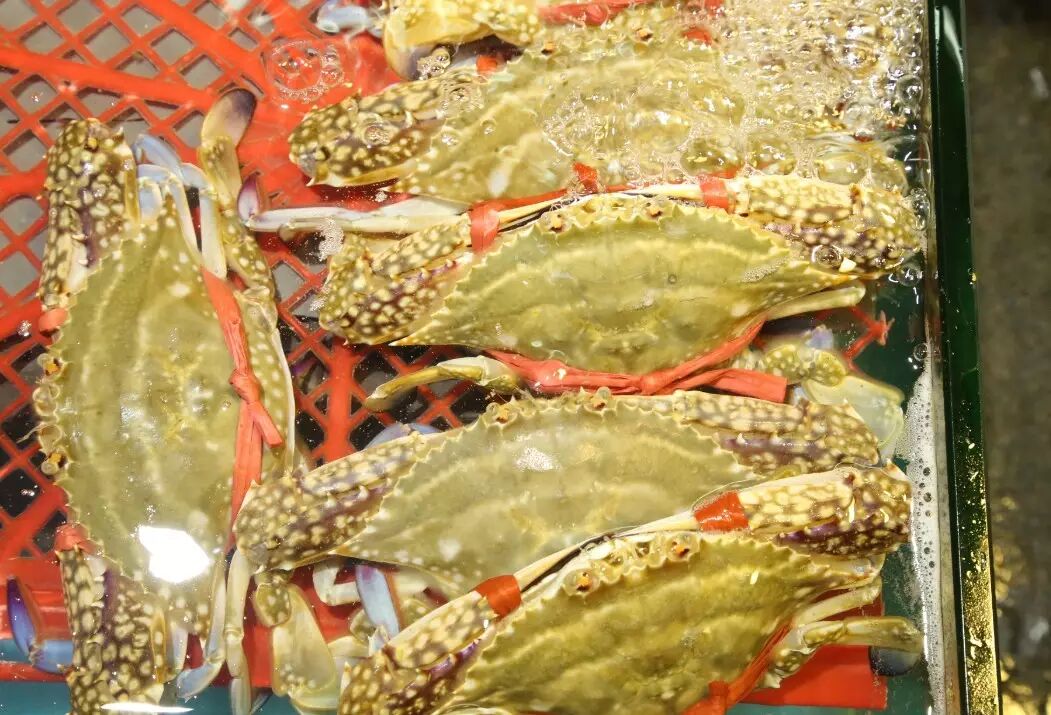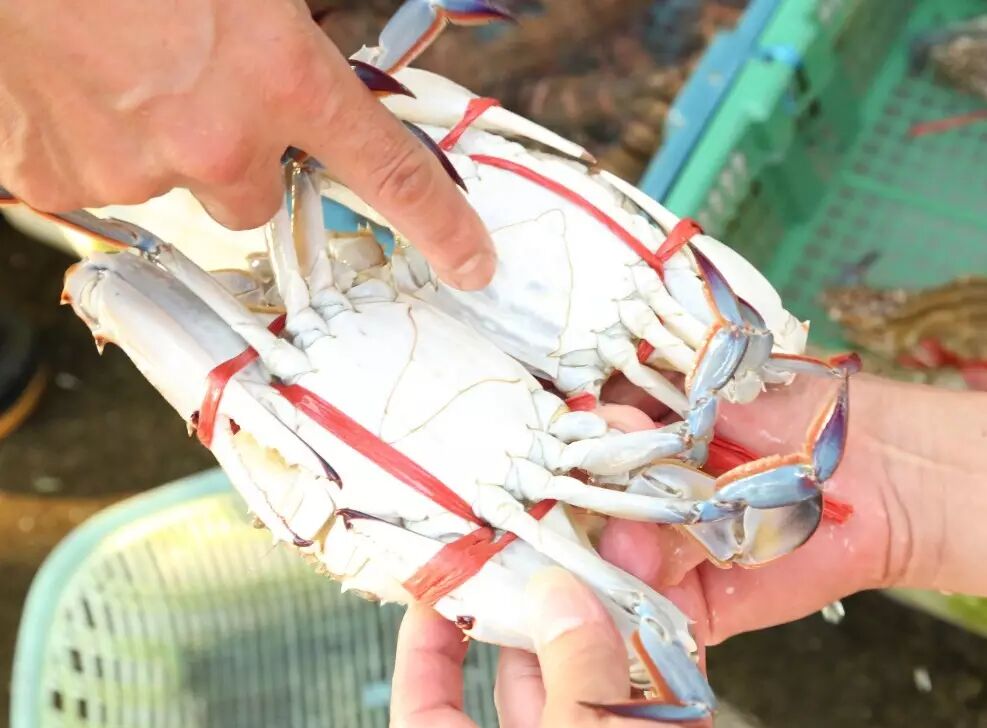 花蟹,公蟹为肚脐尖尖的,母蟹为圆顶状。