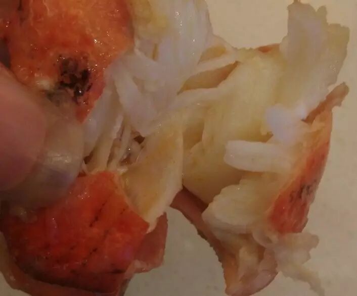黄总说,龙虾要先放尿,方法是反转按住将肚向上,用一支竹签从龙虾肚近尾部的小孔直插腹部,尿液就会自动流出。
