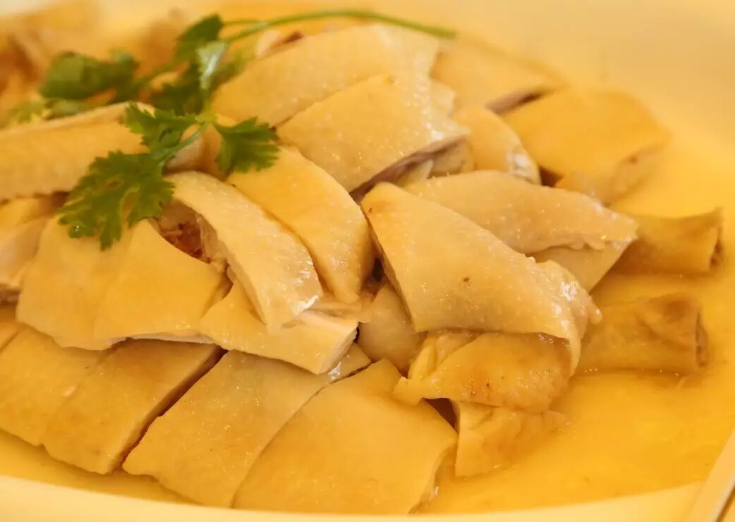 选用正宗海南文昌鸡,两斤半左右的鸡,用秘制浸鸡水浸,这样浸出来的鸡是有底味的,这种做法高明之处在于用底味带出鸡的原味。在本酒楼的文昌鸡建议热吃,跟传统清远鸡等白切鸡不一样,热吃文昌鸡更能吃出鸡本身的味道。