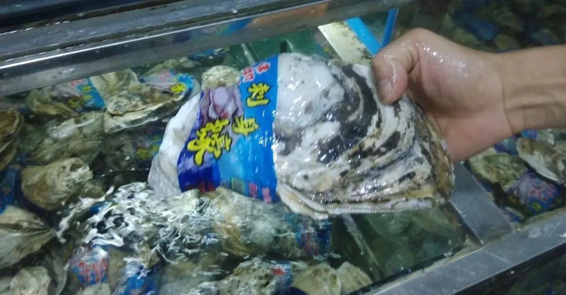 到了商务中心二楼,有一家特地做生蚝,个头有大有小,价格不一,我们要了18元一只的个头较大。挑选的时候,师傅说,挑蚝时一定要挑背部弧度较大的,里面的肉就饱满。