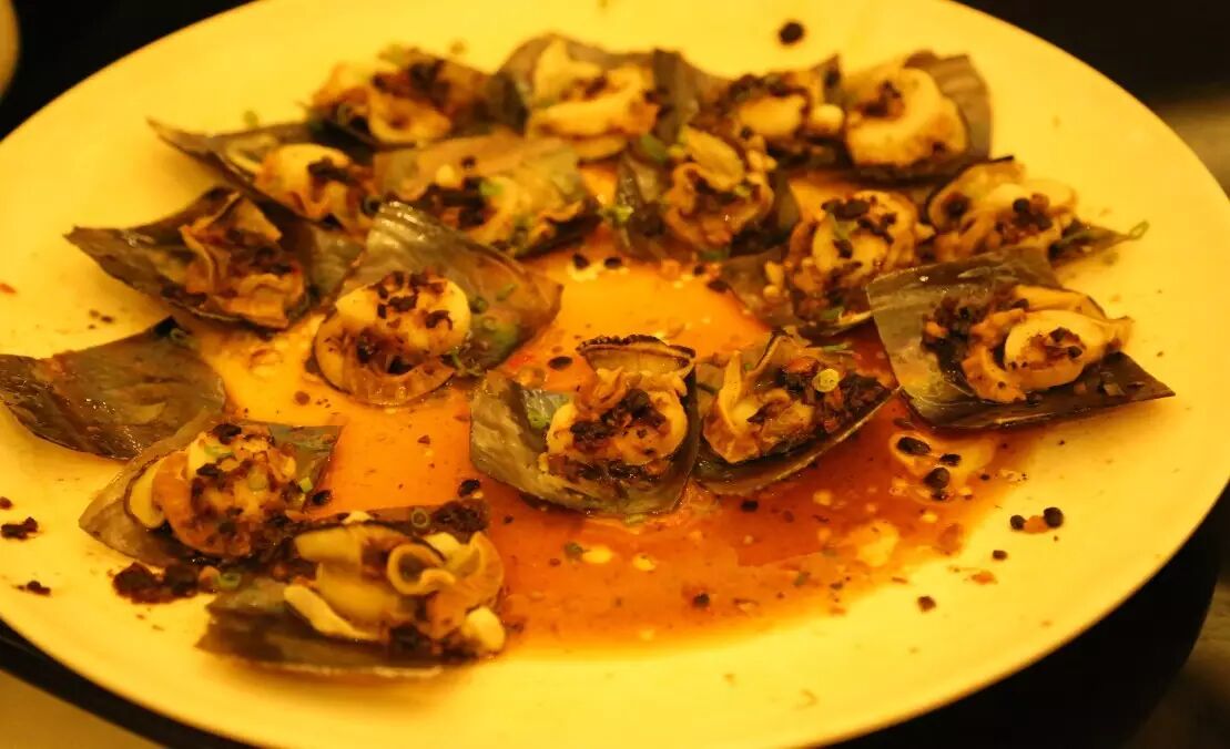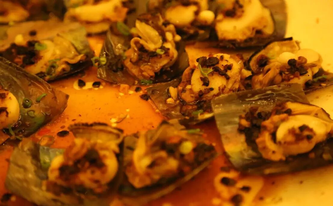一开二,洗干净内脏,斩个圆形出来,豉汁用阳江豆豉,蒜蓉,味料等,蒸的时候灼水,加上调好的豉汁料上去,蒸大概两三分钟,淋点油葱花。