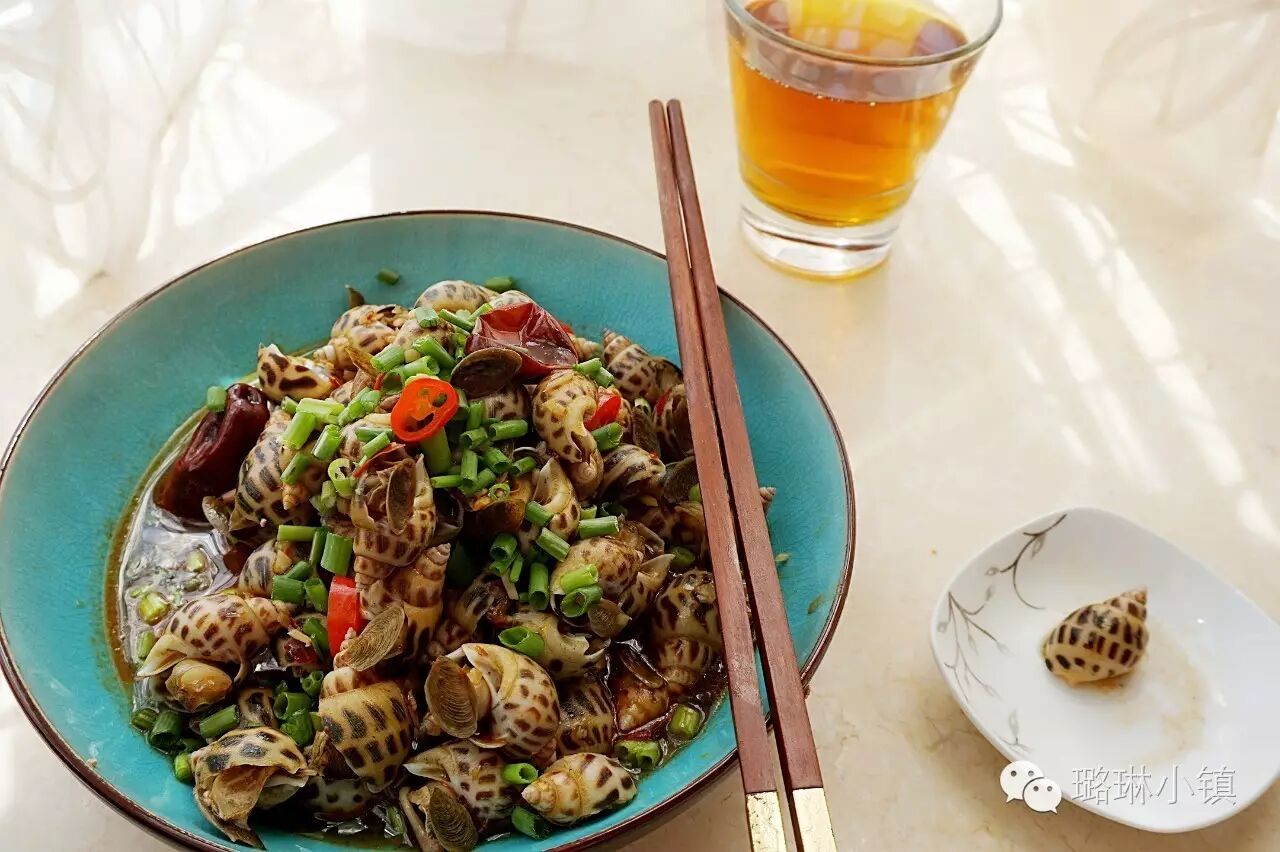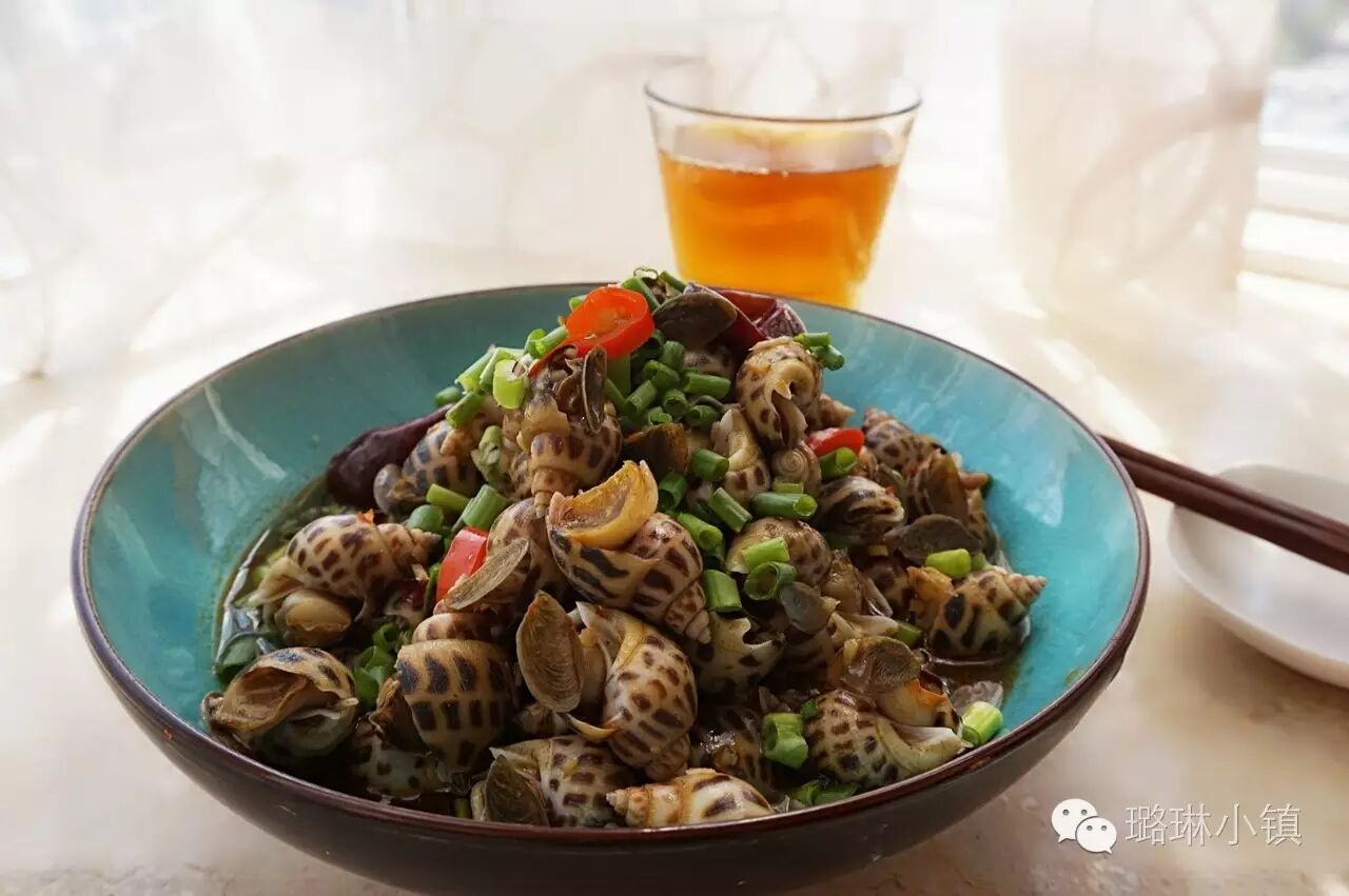 上桌前将剩余的辣椒圈和小葱碎撒上,一道鲜辣可口的辣酒煮花螺就大功告成啦!!!