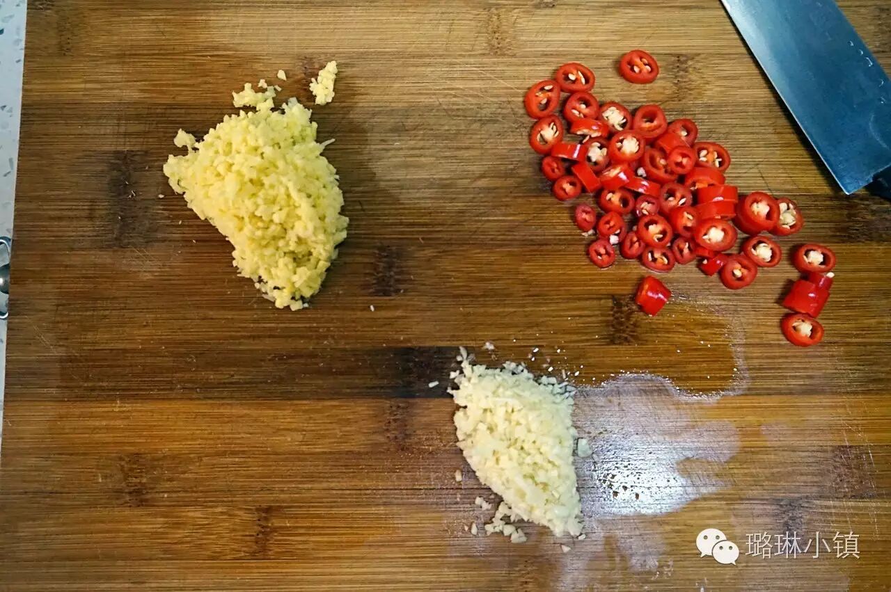 1.将蒜,姜切碎,辣椒切成小圈待用。