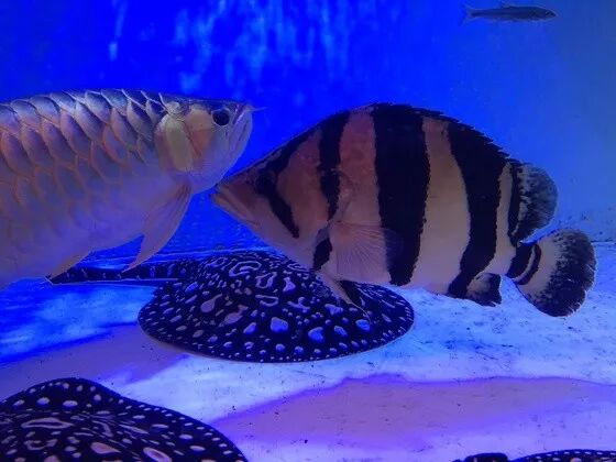 再发一发饲主的其他鱼,一条泰虎、一条幽灵火箭、一群飞凤和一群皇冠黑白。