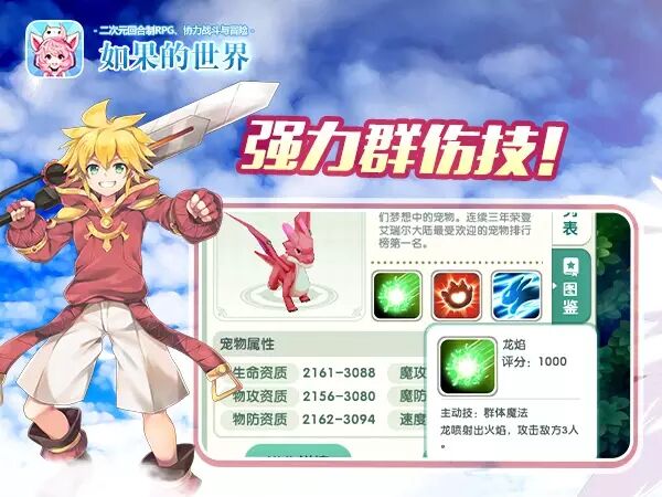 可爱与智慧兼备的红龙是冒险家们梦想中的宠物,连续三年荣登艾瑞尔大陆最受欢迎排行榜第一名。红龙是群体魔法攻击宠物,主动技能“龙焰”能够喷射火焰,攻击敌方3个英雄。看来红龙是一位继小玉之后,刷怪过本的又一明智选择。