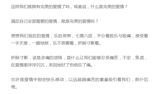我时常会想,我们人类需要的到底是一种怎样的爱情,真的是那种能满足自己全部需求的爱情吗。