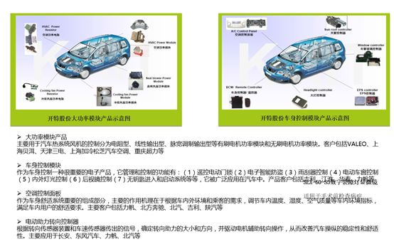 其中不乏新三板的企业也已涉足无人驾驶领域,而开特股份便是较早进行业务延伸的一家。该公司掌握112项专利技术,柔性生产助力产品价格低廉;温度传感器、执行器、调速模块和控制器四大类产品占领国内自主品牌8%-70%市场份额,而进口品逐渐被替代也是大势所趋。