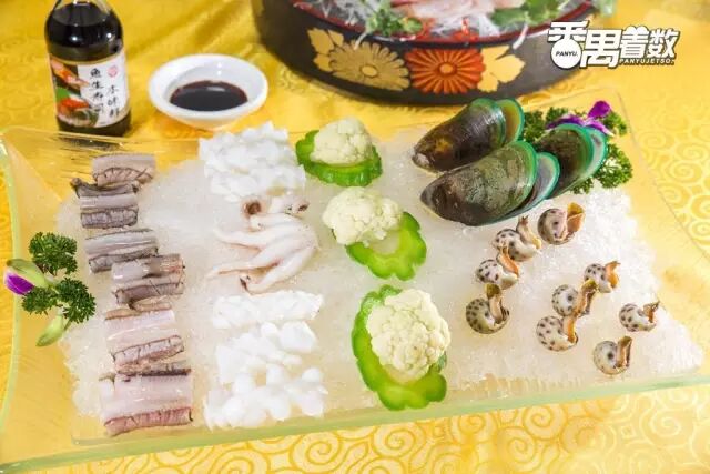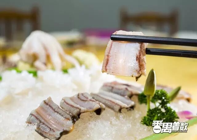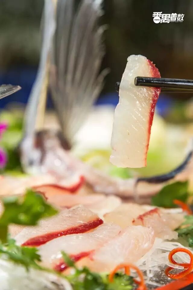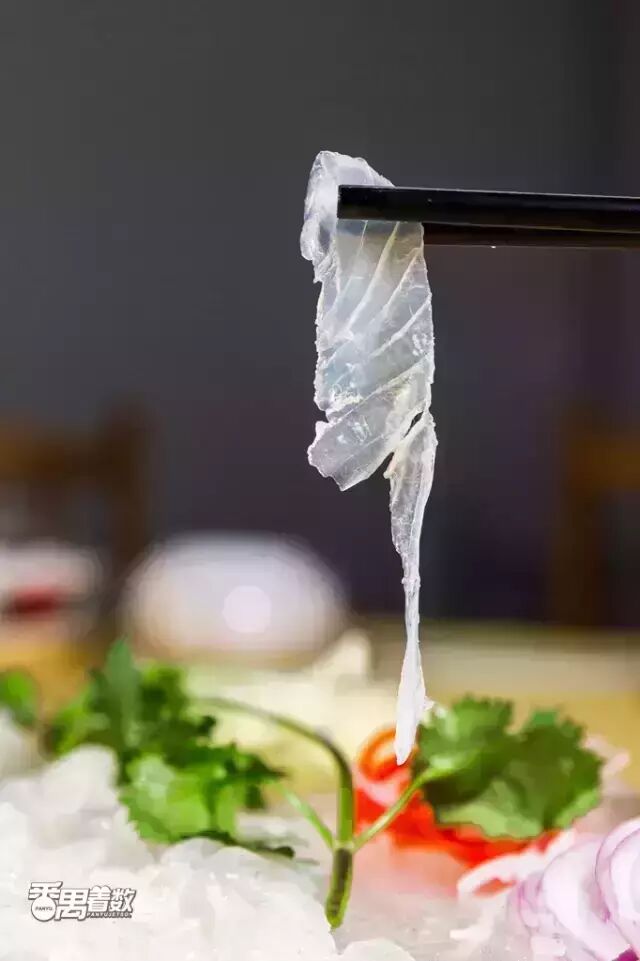 ▷鱼生片片雪白,又薄过银纸,简直和盘融为一体!
