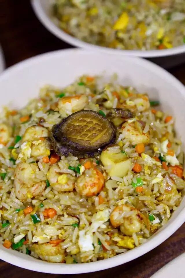 由6只新鲜对虾、2只新鲜小鲍鱼组成的任性龙虾鲍鱼炒饭!简直就是土豪炒饭!经过木桶蒸出来的泰国香米,炒起来粒粒分明,软硬适中。饭粒包裹着虾仁鲍鱼一起送到嘴里,虾仁Q弹、鲍鱼的嚼劲配上干爽的饭粒,绝对是主食的不二之选。