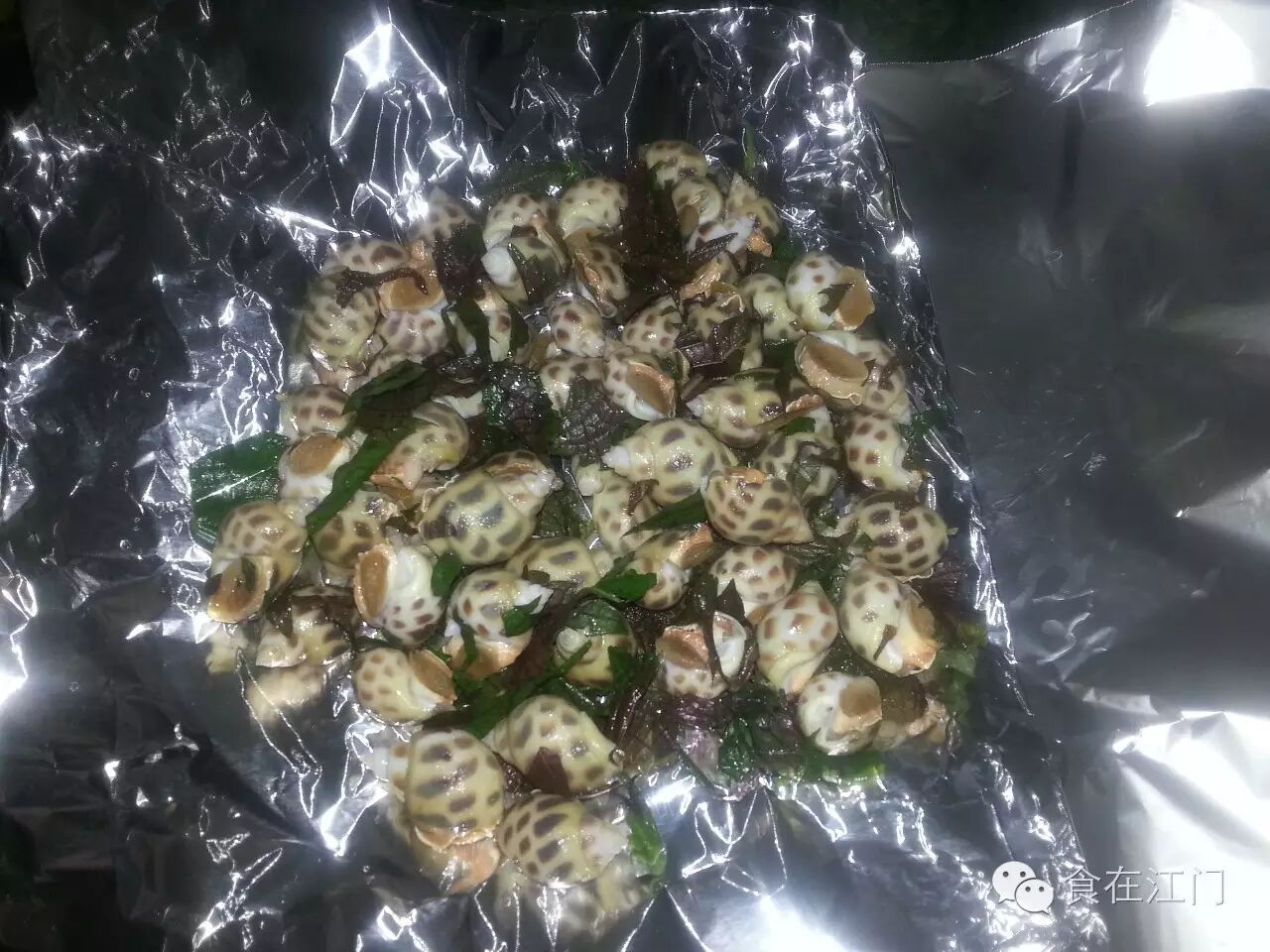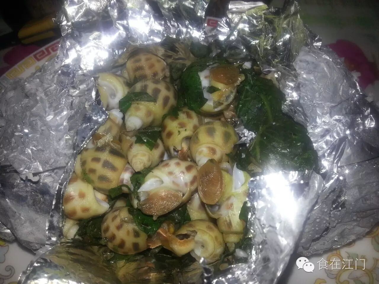 把盐去掉,拿出锡纸包。撕开锡纸,就得到香味十足的紫苏焗花螺了。