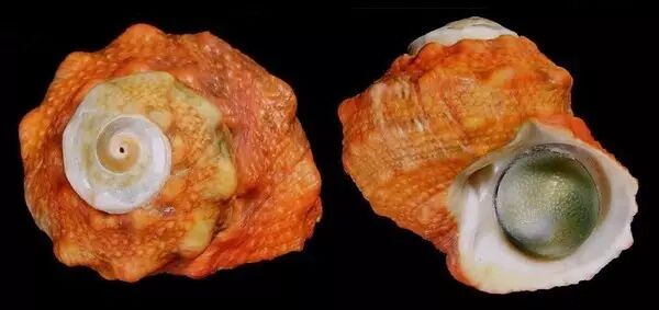 特点:除了这种漂亮的橘黄色之外,大部分瘤珠螺其实都是青灰色的,大小和一角硬币相当。