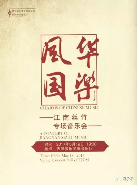 2017年5月18日晚19:30,在天津音乐学院音乐厅上演了一场别出心裁的江南丝竹音乐会。聆听完后,感受很多。上海国乐研究社的江南丝竹音乐团体,以其纯正、浓郁的表演风韵和细腻、精练的演奏技艺,受到现场听众的一致赞扬。