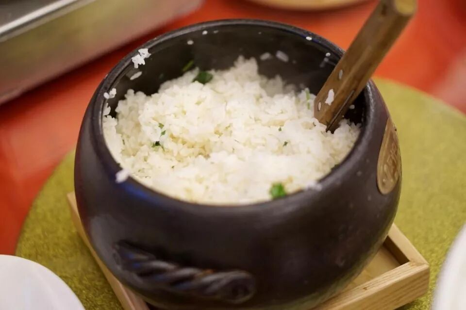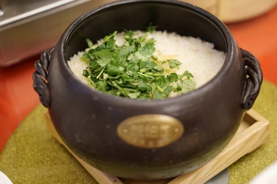 无需放任何汤汁,喜欢吃香菜者,放点香菜入内,搅拌均匀。鱼汤渗入米饭其间,米饭白净,鲜美入内,底部还有微微的金黄色锅巴。米中有鲜,鲜中有香,香中有情,绝妙的滋味简直是人间珍品。
