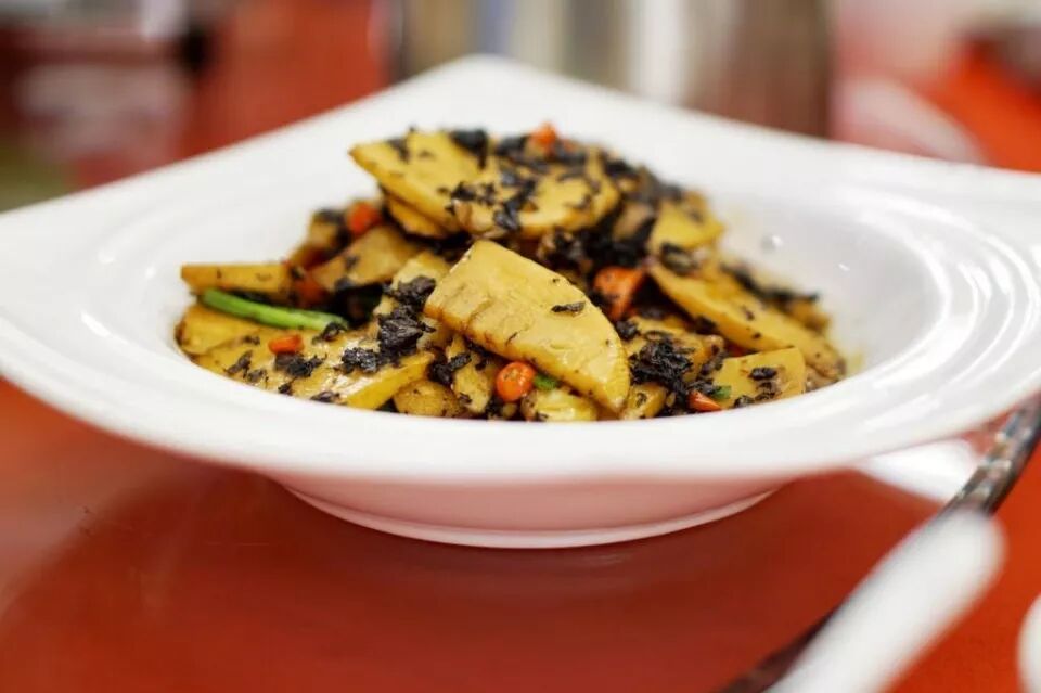 油焖冬笋是冬季必吃食物之一,冬笋壳紧包,切片油焖,油焖出来后少了涩的味道,吃着肉质嫩脆,味极鲜美。