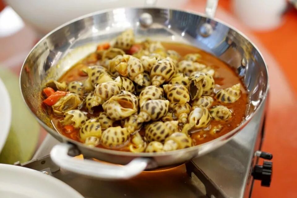 辣酒煮花螺是咱大湖南传统的地方名菜,用油把姜片蒜末爆香了放点水,然后放入花椒、八角、桂皮,慢火煮,放花雕酒,花雕酒倒半瓶,水开了就可以放花螺,煮上个3、4分钟便可。吃着味道弹牙嫩滑,香辣可口,鲜美入味。