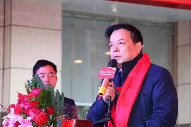 湖南省餐饮行业协会会长刘国初为饭怕鱼富兴店开业致辞,期望饭怕鱼将鱼味做到极致,在品质和特色上为湖南省餐饮行业做出表率。