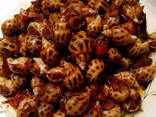关于螺类的美食,最为人知且吃的最多的应该是石螺,一个既普通又美味的食材,烹饪的时候放入些许紫苏调味,口感更佳。