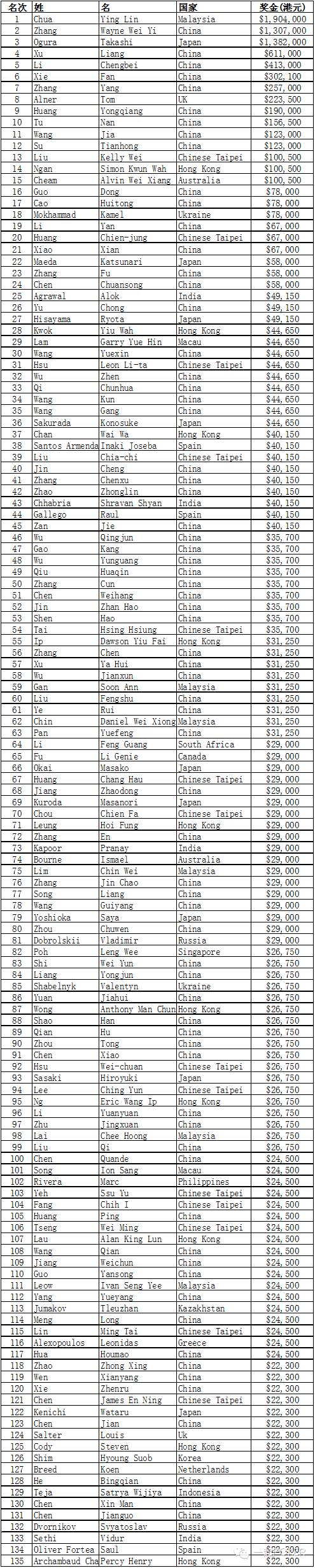 时间17:23,大连张阳获得第七名,收获奖金257,000港元。