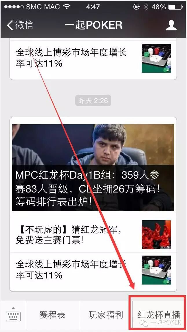 如何观看红龙杯豪客赛直播,进入一起扑克微信公众号: