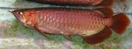 它来刚来的时候,前辈是这样描述小伊的:“从回来的60条10公分isaku中遴选挑出这只小鱼,金属光泽超级强,如同过背一样白金色,闪光灯下看到透出淡淡的浅蓝。发色超早12-13公分时腮缝已经见到动静,15公分时A字已明显开始发色。胸鳍呈现出特殊弧度(其实是呈现三折线型的弯折角度),胸鳍梗骨粗大,鳍膜颜色喷铅黑色砂,胸腹鳍末端呈现特别的荧光色粉末。后三鳍、嘴唇呈现深沉的猪肝色,虎斑颜色偏深,排列细密对合。鱼的整体感觉发色欲望是最强的。”前辈这段话也致使此后对小红龙的挑选有深刻的影响,对鳞片有严格标准。