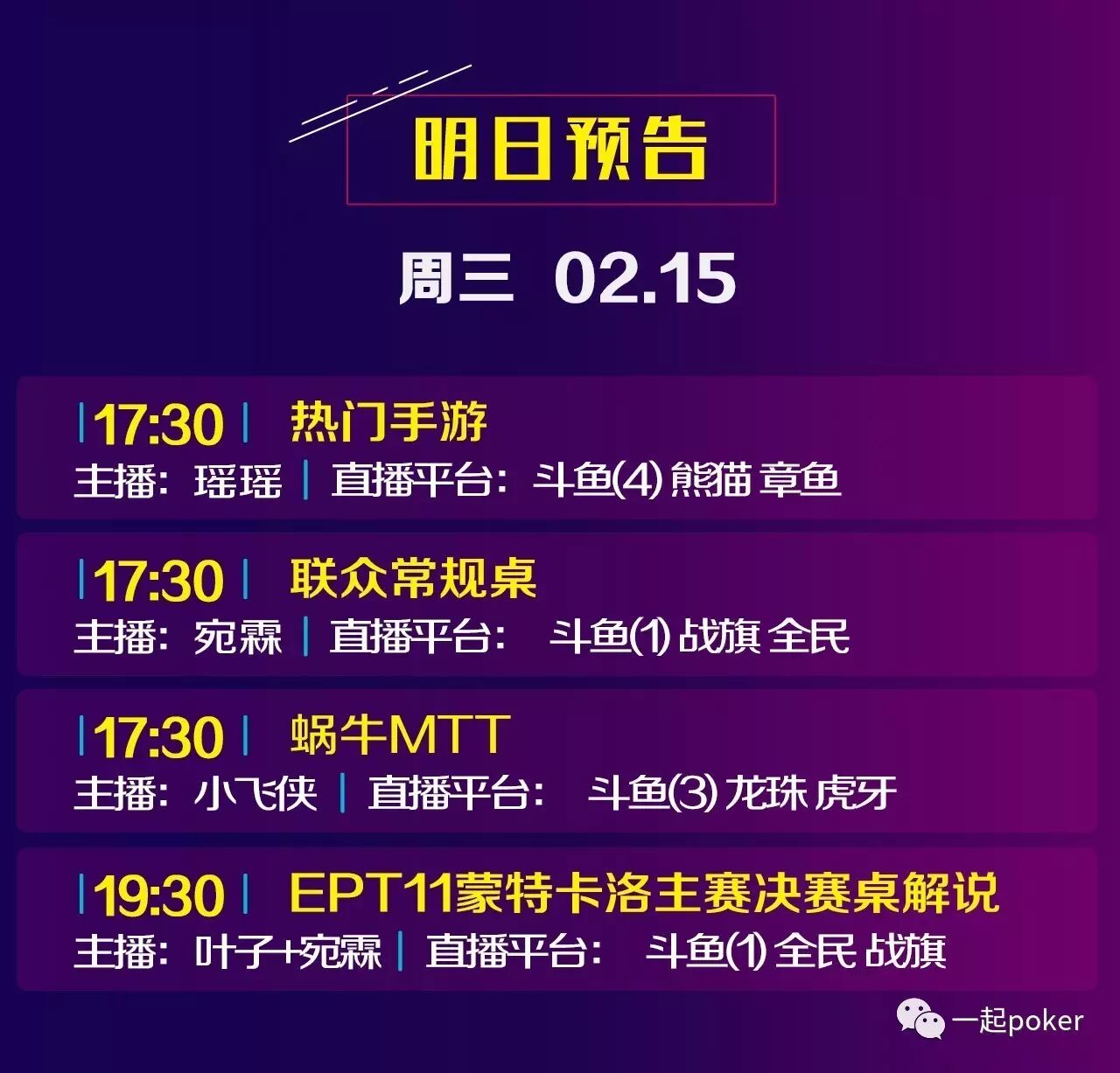 红龙赛Day1C现已开战!本届MPC参赛人数能否再度突破,就取决于今天的赛事。谁能夺得晋级Day2最后的入场券?请继续关注“一起Poker”公众号。