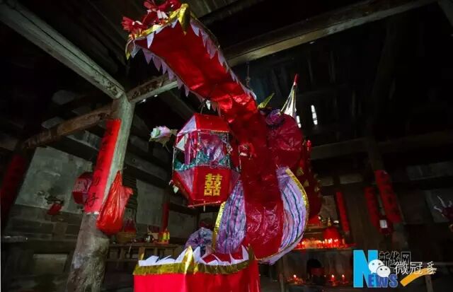 龙头和龙尾要先在祖祠内装饰好,参与活动的主事们聚在一起吃饭喝酒,上香鸣铳,按程序进行祭拜后,龙头方能被请出祖祠。