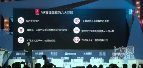 殷元江提到,VR直播虽然市场前景很大,但是还有实时拼接技术问题、头显的舒适程度、编解码、云端的运算分发技术和CDN成本问题、宽带水平受限影响画质及在线人数、拍摄方式单一,缺乏交互性、市场窄众化等多方面的问题阻碍发展。