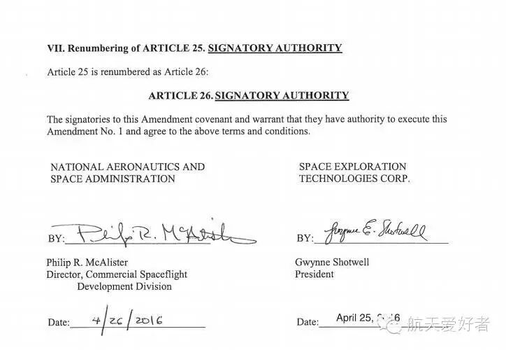 此次合同的正式签字页,右侧清晰可见Gwynne Shotwell的签字