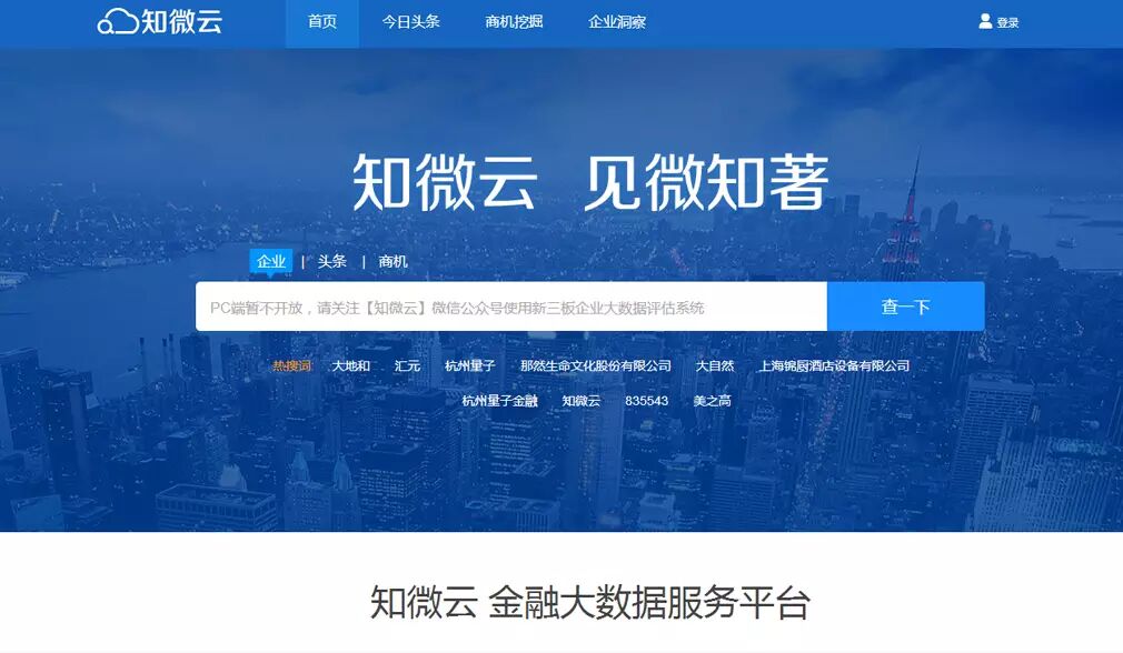 知微云是基于大数据、机器学习、人工智能等技术建立的一套完整的大数据抓取、 清洗整理、分析和业务化的平台。