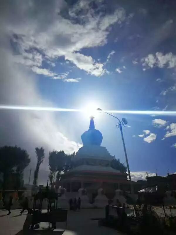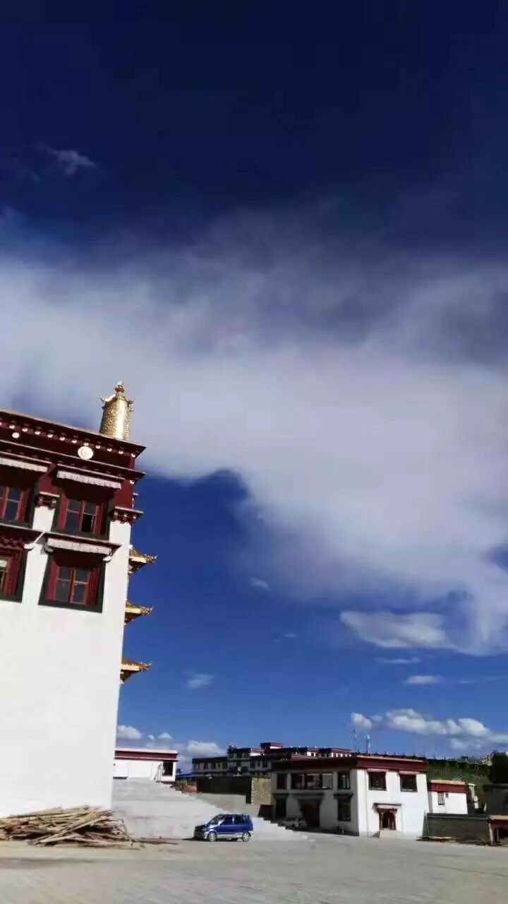 下午天晴,三人游长青春科尔寺和理塘白塔公园。长青春科尔寺又称理塘寺,,是康区历史最悠久,规模最大的藏传黄教寺庙。长青春科尔为藏语译音,"长青"意为弥勒佛(即未来佛)"春科尔","长青春科尔"、妙谛永存)。目前正在大规模装修,还未对外开放,有幸当地一藏民带我们进去简单朝拜了一下,那规模真可称得上壮观。在寺庙旁的中莫拉卡山的山坡上,能一览理塘县城全景,山顶上风中飘逸的隆达,让人感到藏界佛国的庄严和肃穆。在这样的环境下,远瞭广阔无垠的崇山峻岭,就觉得自己是那么地渺小。