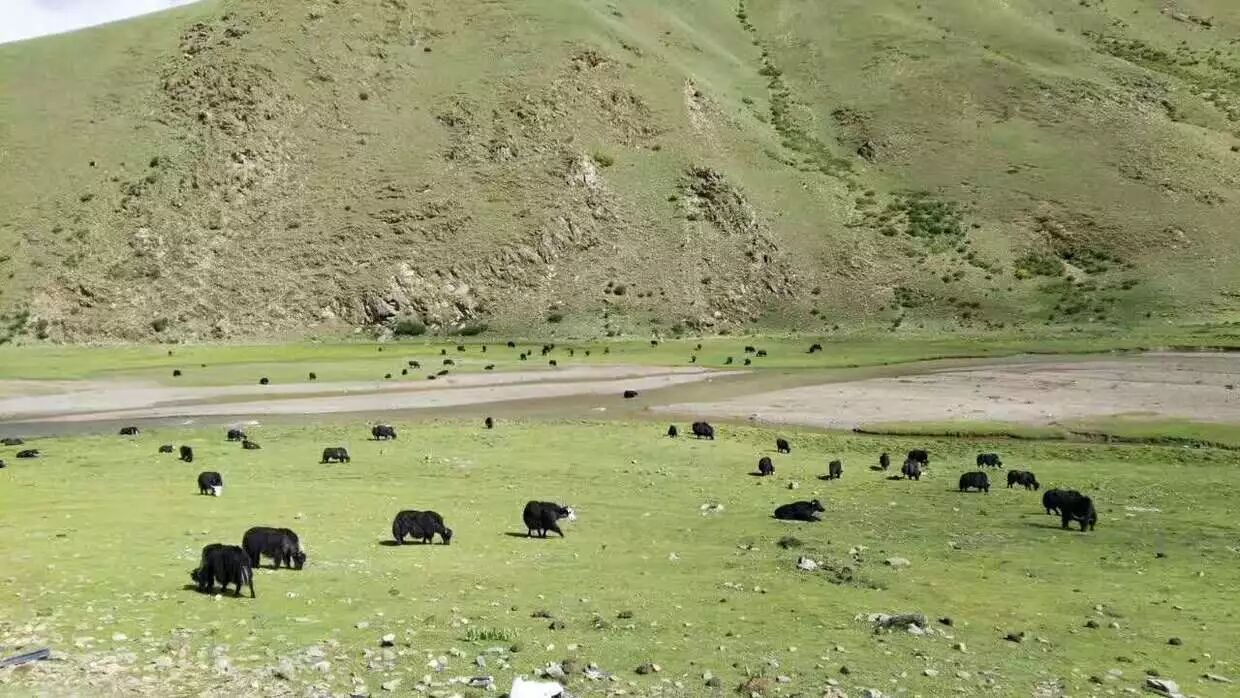 站在中莫拉卡山的山坡上,能一览理塘县城全景。由左向右分别是:啊聪、我、永珍、岛、静水流深、休也、绿云