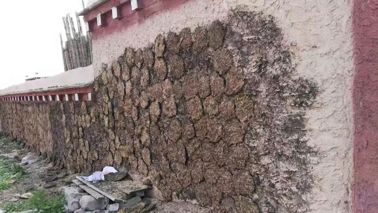 在去往长青春科尔寺的小弄堂,藏民把牛屎糊在墙上待干作燃料