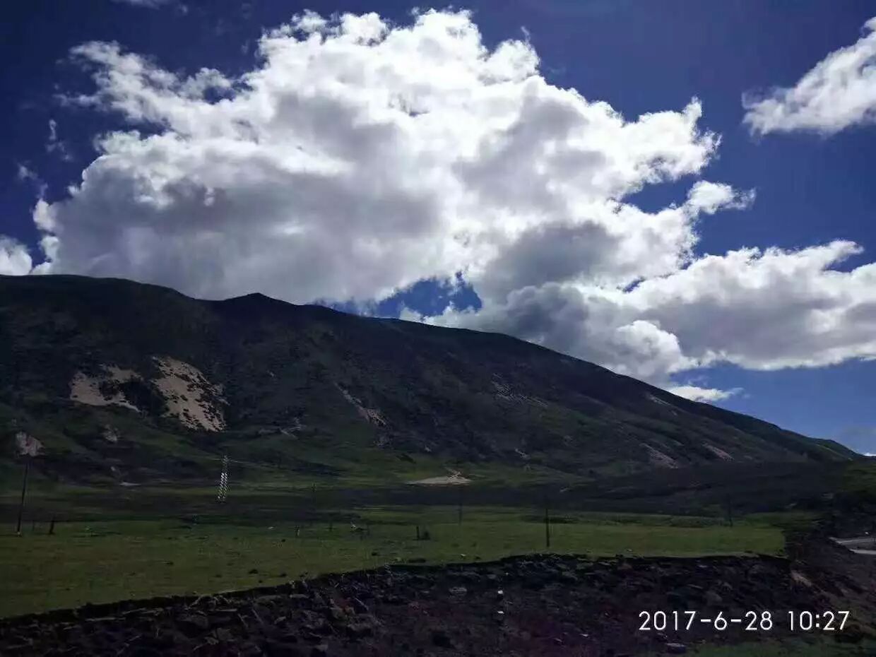 6月27日,今天是休闲游。从红龙乡到理塘,一路在草原中穿行。蓝天,白云,河流、高山草甸、组成一幅美丽的画卷。夏天的风徐徐吹来,铺天盖地的绿波将苍茫大地覆盖,唯独远处的雪山,依然闪烁这银色的寒光。偶而在山坡上露出的一幢小寺院或藏居,组成一组人间天堂的意境。在这样的环境里骑行,虽全程海拔4000米以上,也就不觉得累了。