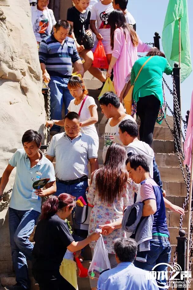 首次登临二郎山,带着好奇和新鲜劲儿,想看看一年一度的盛会到底是怎样的人头攒动,万人空巷。可能太过炎热的天气,上午的亲临没有想象的那么盛大,人都去哪了?但是,二郎山本身的威严和壮观有震撼到我,庙会各地到处都有,然而属于神木的文化符号就刻在这里。