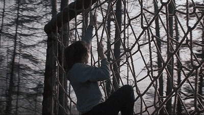 女主史达琳在森林中跑步外加体能训练。一个长镜头的运用,把森林的空旷、寂静以及不安的氛围渲染得恰到好处。