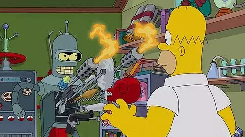 ● 嘿,《飞出个未来》(Futurama)的剧迷,千万不要忘记11月9日的《恶搞之家》(Family Guy)是两部剧集的交叉集!在这一集中,Homer及其家人无意中「毁灭了未来世界」,星球速递的英雄们将通过时间旅行来「消灭」Homer Simpson。看起来他们最后都成了朋友?