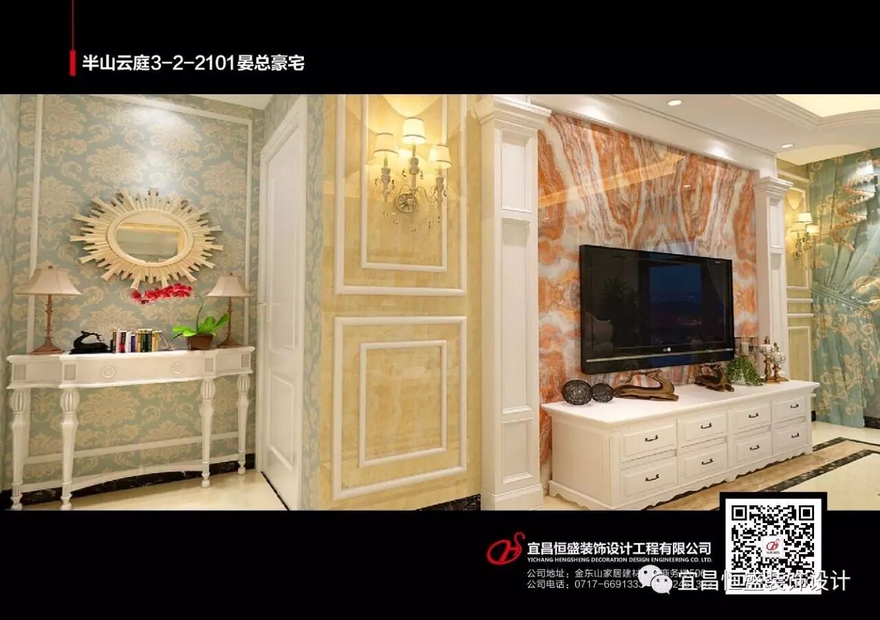 主要用材:大理石、墙布、红龙玉、木地板
