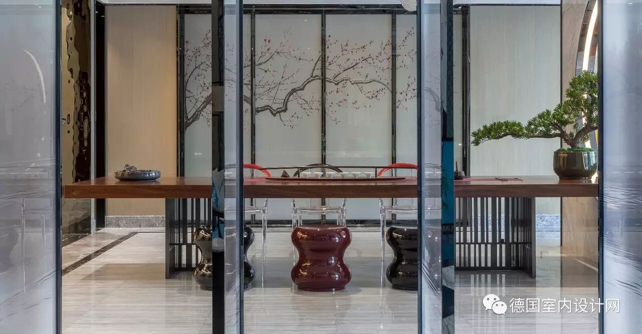 Theusage of Chinese Screen splits the space, also reunion them with thetraditional Eastern aesthetic by means of the painting on the Screen.