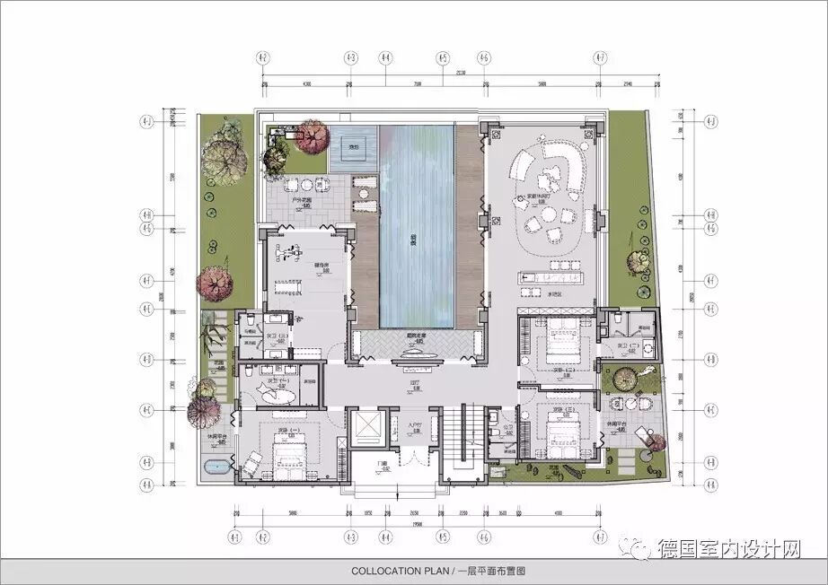 傍水而居,和山水融为一体,在喧嚣的闹市中清幽自得,在含蓄节制的空间中屏蔽干扰,心灵真正的得以升华。