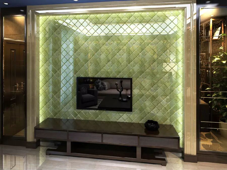 现代家庭越来越重视电视背景墙、客厅背景墙的装修设计。如果经济一般可以选择普通的大理石,如米黄、爵士白、中花白等,经济条件好点的可以选择玉石透光石(松香玉、青玉、红龙玉、白玉、金蓝玉等)作为电视背景墙客厅背景。尤其安装玉石透光石(在大理石玉石背后安装LED光源)然后四周安装LED灯带。在夜晚来临的时候开启电视背景墙客厅背景的背光等及四周的LED灯,既浪漫又温馨。