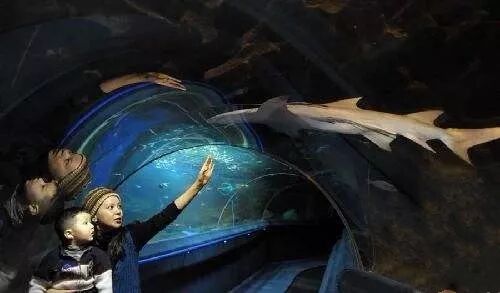 水族馆内有着非常丰富的海洋生物,如海星、龙虾、海马,还有鲨鱼与巨型石斑鱼等体格硕大的“居民”。这条水下隧道,能够让游客清晰地看见距离掠食性鲨鱼几厘米的海床上游动的情景。