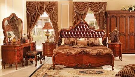 美式家具多采用胡桃木、樱桃木和橡木,油漆以单一色调为主,并且与真皮、布料、铁器、大理石、玻璃等多种材质相结合。材料的处理刻意强调自然与功能性,采用看似未经加工的原木材料来制作家具,以突出其天然的质感。圣涛阁美式家具,精选优质木种,采用名贵实木制造,木质清晰,质感细腻华贵。床头采用头层黄牛皮,柔软舒适。大理石采用意大利、西班牙、伊朗等进口名贵石材,包括玉麟石、红龙玉、珍宝玉等种类。