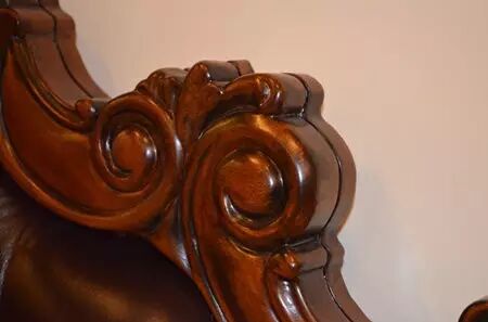 美式家具在轮廓和造型上源于欧式家具,然而在雕刻上美式家具遵循简约原则,只在腿足、柱子、顶冠等处雕花点缀,不会有大面积的雕刻和过分的装饰,使用起来更舒适。可以说是更讲究格调、欣赏和舒适性的继承。一些劣质的欧式古典风格家具,造型款式上显得很僵化,特别是表现古典的一些典型细节如弧形或者涡状装饰等,都显得拙劣。我们可以看到圣涛阁家具的花纹雕刻细腻生动,与机械的雕刻完全不同。