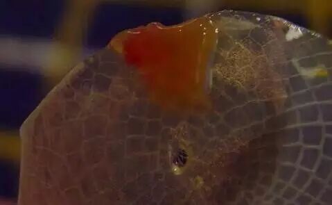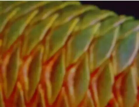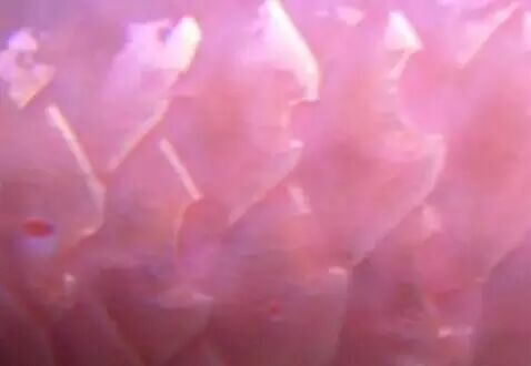 症状:鳞片边缘出现腐蚀,呈现锯齿状,严重时完全将鳞膜完全腐蚀掉,甚至开始腐蚀鳞片。