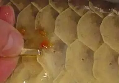 症状:鳞片边缘充血,有粘液包裹,刮掉粘液,可以看到鳞片腐蚀