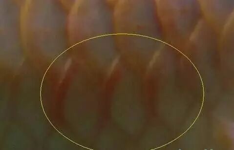 症状:鳞片第二鳞框位置基底(肌肉部分)有发红感染迹象,,在龙鱼转身游动时可见有轻微立鳞表现,该病与下面所说立鳞最明显的区别是扩散不快,治愈难度小。