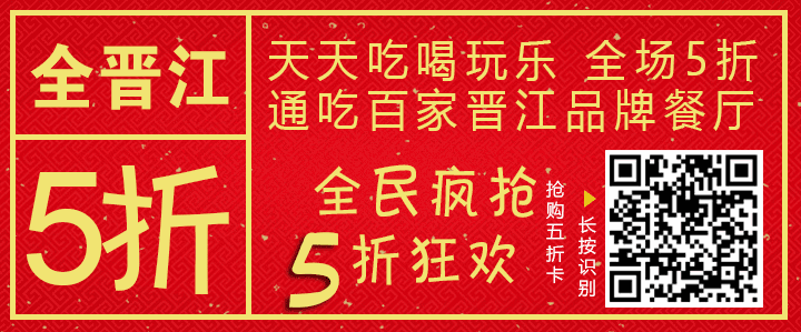 每天凭晋江五折卡或小鱼卡,