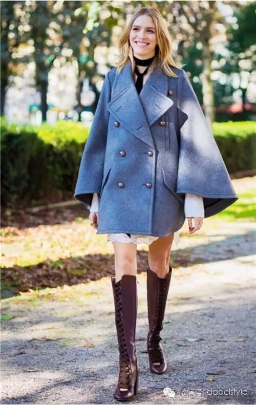 相信一件又很多妹子开始穿斗篷出街了吧,但是你觉得穿斗篷搭配一双小短靴真的好看吗?赶紧穿一双长靴吧,这样形成上宽下窄,还能显得下半身更加修长和纤细。这样一双走上街头一定是人群中的亮点。