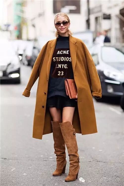 接下来要说的是冬天比较经典的搭配:大衣+长靴,看到这身搭配我的脑子里闹出了两个关键词“抗风”、“保暖”同时也能告别臃肿的烦恼,穿上身干净利落又干练。